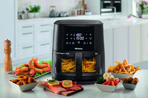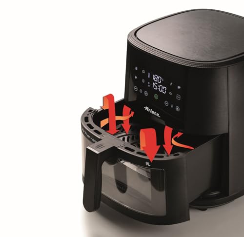 Ariete 4630 Friggitrice ad aria 9L, 1500 W, Capacità 9L, Capacità di cottura 2,5kg, 8 programmi preimpostati, Temperatura fino a 200°, Cestello trasparente per controllo cottura, Nero